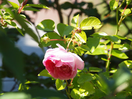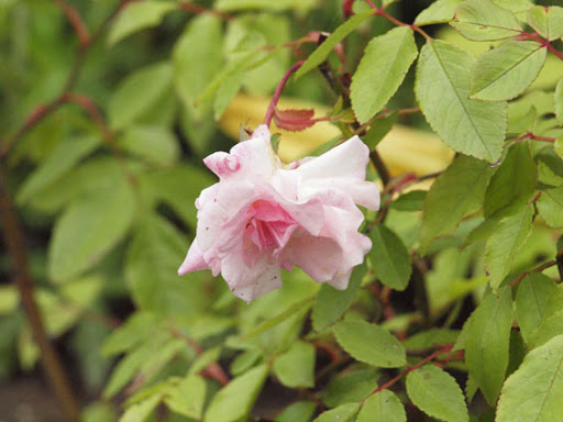 | My Jasmina is still young, I got her this spring as a replacement plant and she arrived in a pot, where I suspect she spent whole last growing season somewhere in the back of the nursery - so she had "leftover" sign all over her. :) Non the less, she did quite well for me since. I planted her in a corner near the hedge, which generally is rather dry, mostly heavy clay with small bit of extra compost I've added when planting her, no fertilization so far, no mulching, probably about 6-ish hours of direct sunlight, since later in the day she gets a shade from a tree. She put decent growth for the newly planted rose and is going to bloom quite a lot on all canes. Leaves look to be healthy as well, although I did not have much bs appearing in the garden in general, so still have to see how she does. All in all so far I have an impression that she is not all too fuzzy rose, more the kind that you plant and enjoy, with occasional handful of fertilizer. Looks wise, she has rather small leaves, a bit like for example New Dawn. From what I saw in HMF she can be rather bushy, but I think as young plant she can have a bit bare canes, before she puts on some volume - a bit that sort of teenage plant stage. Blooms are really pretty and subtle - quite round, nodding, pale pink on outside and darker inside, quite lovely blend. Also I like the fragrance, it is sweet and medium strong, somewhere in between old rose and tea, with fruity notes. Overall I think it is more of a rose that looks good as a cottage garden plant, rather than stand-alone formal garden plant. If for example Mme. Isaac Pereire is that kind of rose "look at me, I am primadona, look at the bright, look at the huge, hello, I am fragrant, what you mean I am bit short and need to improve my health? What kind of companion plant is that, can't you see it does not match my shoes?", Jasmina is a bit like "oh whatever, I am young village lass and don't need a ton of make-up and the evening gown to be pretty and I do not get hangovers after each flush. And by the way, I am all natural." |