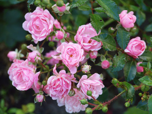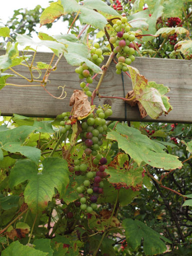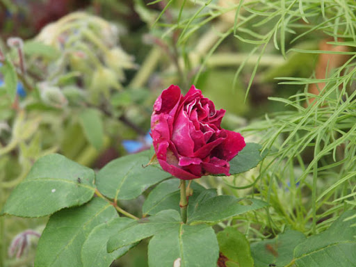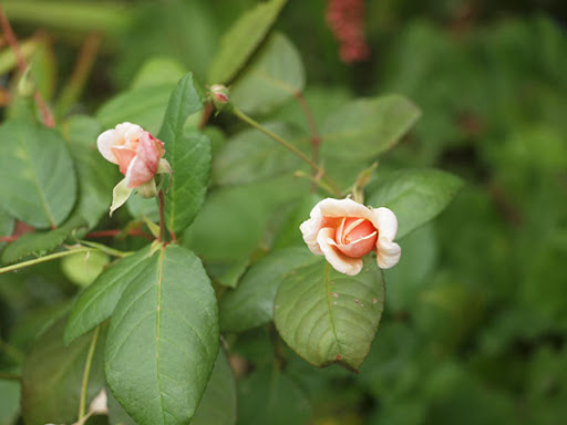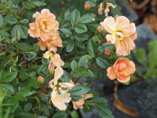 | Aimee, yes indeed we have quite a few of the same ones, mine will go dormant in a month or so though. :) I also like the berries at this time of the year, blue grapes can be so decorative, as well as blackberries, pyracantha (the red ones with clematis) and cotoneaster stay well into the winter, until birds eat them somewhere in January. I have a few hollies growing, which should be a nice addition to the winter garden in a couple of years (that's me being cheap and buying just rooted cuttings lol). Kitty, Nahema is clear baby pink - I think that describes its color the best really - rather warm and shining texture of the bloom. She copes with the rainy weather also very well, does not ball at all, also has quite strong old rose like fragrance. So far I am really happy with her, healthy, not overly vigorous and stays in vase reasonably long. Geoff Hamilton however is somewhat meh... This pic was made that day when he just opened and looked ok, after that he fades to whitish violetish pink and tends to brown rather quickly. In the warmer and dryer climate he might do better, then again, it might be not the rain at all, but rather the general ugly aging of the blossom. With my orangy/peach roses I tried to plant white and yellow companions this year, but it looked a bit bleak, I think mixing them with deep/light violet works tad better. I also mix them with some red bloomers, blue can work well too. Some penstemons, monardas, phlox, campanulas, thistles, siberian iris, asters often come in those shades. For orangy climbers also mixes with clematis work great, since there is wide choice in blues and violets among clematis. :) |