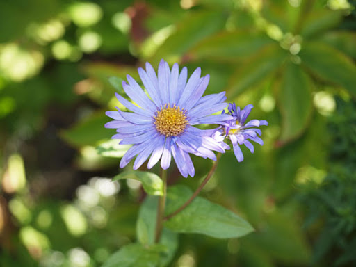 Felicia - almost missed her blooming since the butterfly bush is hanging above her.