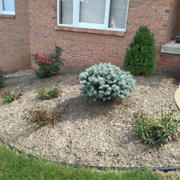scsig, You might check around your area to see what a load of topsoil would cost, its sold by the ton here. We brought in a very large load of river bottom topsoil and another of coarse sand, sand is cheaper than soil but delivery is another part of the cost. Its not all that expensive here and was well worth it in the long run. We built up some planting areas into nice softly sloping rounded mounds. It adds interest to an otherwise flat area and if you really want to add a feature, you could consider a few well placed large rocks maybe to plant around. It was cheaper to buy by the ton than it would have been to purchase bags at Home Depot. You need a wheel barrow, they will dump it in a pile. Its just like those piles you see of sand they bring in when new housing additions are going in. If you are into gardening you could widen the area while you are at it but some people just want a nice entrance deal.