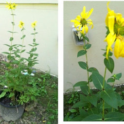 This is the same plant from last year. It has splayed out completely from the center with almost all stems horizontal. I was thinking of replacing it with something more upright like "Ashai" Sunflower but with such unique blooms and the plant in a very wild area of the garden, we have decided to let things lie ;).