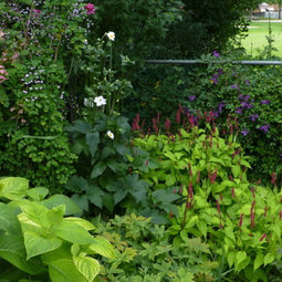 I still have Rudbeckia hirta, R. triloba, R. Glodsturm, Geranium 'Rozanne', Phlox paniculata, Hydrangea 'Annabelle, Hydrangea quercifolia, Hydrangea paniculata, Morning Glory 'President Tylor', Clematis 'Bette Corning', Echinacea purpurea, Lychnis calcedonica, Clematis 'Huldine', Lilium speciosum, Pelargonium, Feverfew, Roses and Hosta plantaginea in bloom.