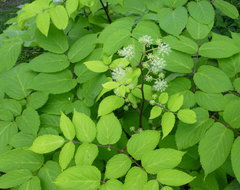 well rouge, it looks like my style of planting is what you might want for your aralia to stay small, because mine has survived but def NOT become big. I have it in open shade (no direct sun) and growing up through a ground cover of yellow and green euonymus. yours is robust for sure. i alrdy grow quite a few yellow leaved woodies, but we will be picking up many more this month from Broken Arrow. The aralia sun king reminds me a little of the yellow leaved philadelphus, though the mock orange has smaller leaves.