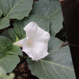 used to grow brugmansia indoors but got tired of fighting the whiteflies and switched to the annuals. hadnt had any for a couple of years but volunteers sprouted in the veggie garden. dont have hornworms but supposedly they will eat the daturas in preference to tomatoes. datura honey is mildly hallucinogenic with a bitter tang that tastes like the leaves smell.