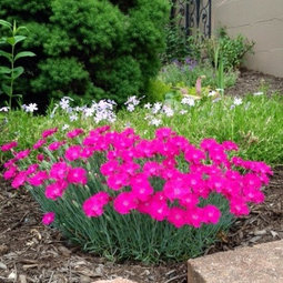 Maybe one of the "Flame series" phlox paniculata? These are dwarfs at 20" tall & come in a wide assortment of named colors with high mildew resistance & prolonged bloom beginning earlier than taller (3-5') phlox. Not usually a fan of minnied classics, find myself appreciating these for their retention of that sweet phlox fragrance, their versatility where their taller brethren would be too large & their kindred ability to lure the fliers - hummingbirds & hummingbird moths, butterflies, bees.