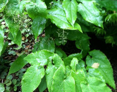 This is a very large leaved one I got from asiatica before it closed. cannot find tag! I love them and they only look bad in very late winter (as with other things!). Sometimes I cut back old foliage and sometimes I just leave it to be covered with these gorgeous new leaves. the new leaves are spectacular (on all). Columbines I consider so different as to not even compare the two.