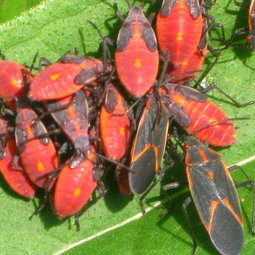 We get boxelder bugs every year. They usually congregate on the warm side of the house. They're here in spring and then kind of fade away, doing no harm that I can see.