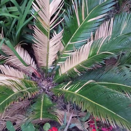 I do usually throw a warm cloth and leaves over the growth point to be on the safe side and I don't cut the leaves until they turn splotchy in the spring.I covered them with a blanket but it is too D@MN large and the horizontal configuration has the blanket always blowing off when the Blue northers hit. I am thinking about cutting them ALL the fronds off before the cold from hits and using them for insulation before the cold hits. God knows covering them with a blanket will be easier if one has just a stub. Also the old leaves are sucking energy that can go to the new young scarless leaves. Funny how they don't show the cold damage immediately. One thinks that you escaped the fire but then they turn on you. Maybe I will start collecting thatch for a chicken house or something silly.