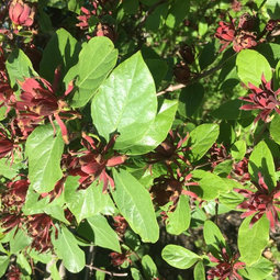 miracx, Cornus mas, also called cornelian dogwood, is a very large shrub that has very early yellow flowers (earlier than forsythia) and edible red fruit. Some kinds have been selected for fruit and some for the blossoms. It can be pruned to tree form, but I've only ever seen them grown in shrub form.