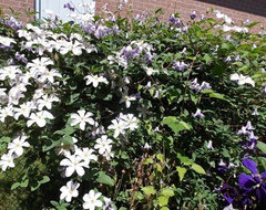 This blanket of clematises on the north alley fences always makes me smile in July :-) It's a mix of Huldine, Jackmani Superba, and Betty Corning. Originally there was just the Jackmani, then I added Huldine, and later Betty. It's a battleground - but pretty!