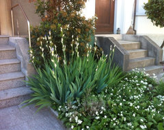 The bay area has different growing conditions than the areas where we generally design. But what you want to look for is a full sun plant that can grow in part shade; you do not want to try to convince a shade grower to be happy in 4-5 hours of strong sun. A number of plants would be happy with that amount of sun, so you should still have a variety to choose from.