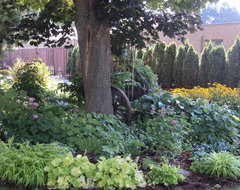 I planted under my two maples before any one told me it was difficult/impossible to do so. I have not found it that difficult. I do water weekly or even twice weekly during a drought, which we do not get often. I also mulch yearly in late Spring and spread compost. This is very bright shade though since trees face South. There is no direct sunlight though except for the Southern edge of this bed where you see the rudbeckia. I also have a clump of rudbeckia in total shade and they do well there too. This picture is from September of 2014 and the beds were installed in 2006. Plants are most of the ones mentioned already, epimedium, hosta, grasses, turtlehead, anemones, rudbeckia, ferns, geraniums, lungwort, ligularia, yellow waxbells, solomon's seal.