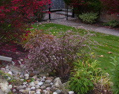 For a beautiful late-season bloomer, Boltonia 'Snowbank' is great, as long as you shear it back a couple times times before mid-July. Here is one from our old house, upin Chicago. Here in Kansas, they reseed like MAD if you don't deadhead them. And I mean BAD. I'll bet I now have a couple dozen this size in my Kansas garden and I didn't get around to deadheading them last year, so probably removed ten thousand seedlings, no exaggeration. They never did that up north.