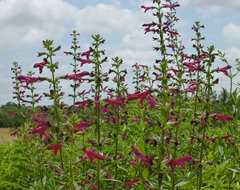 Another salvia with an unbelievably long period of bloom is Salvia penstemenoides which is also called 'Big Red Texas Sage'. Its a native once thought extinct in the wild until rediscovered a few years back growing in a small area. Seed is commercially available and germinates easily. This salvia attracts more hummingbirds and hawkmoths than any other plant in my entire garden and blooms heavily on tall stems, each tall stem having endless deep reddish/purple flowers for weeks and weeks. It makes my courtyard very active and it smells good too, sort of like an antique cabinet. The leaves are very interesting and pretty too. Unlike any other salvia I have ever grown.