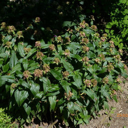 I do a random stem cut back of all monardas early June,then cut blooms for bouquets or dead head asap. I have 'blue stocking','jacob kline' and 'purple rooster'.