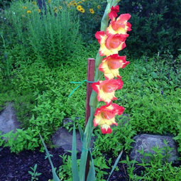 Normally Kent Belle does not need to be staked. This season however with the continual flash floods, the poor plant just couldn't stand up to the onslaught.(It also browned out very quickly as a result). Normally very trouble free - increases slowly, doesn't seed (I've had the plant for 10 years and got one seedling), deer bypass it and quite hardy.