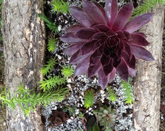 I was going to suggest succulents also, Sedums especially. With just the foliage, you can have an amazingly colorful display. Moss roses would appreciate that it's going to be dry. Especially if you like your stump, as mentioned above. If you put something you have to water every day or two, you'll be shocked how fast it degrades.