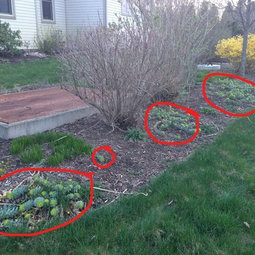 So, I was walking through the arbor where my ZD is, where I want to plant a clematis, and what do I see popping up at the base of the arbor? A clematis! LOL. I forgot I had planted a clematis there. I think it's a roguchi, and I think I plopped it there because it desperately needed to get out of its pot, so it's not a permanent home, at least not yet.