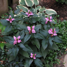 C. obliqua 'Alba' and C. glabra are 2 different plants. Obliqua 'Alba' is a white form of C. obliqua and very prone to mildew. C. glabra is taller, has narrower leaves, likes slightly more moisture, and I haven't ever seen mildew on mine. I grow and sell C. glabra 'Black Ace' and it's a wonderful variety with somewhat darker foliage. Supposedly emerges with black stems. Black may be an overstatement of color. It's more smoky green. C. glabra isn't as dense as C. lyonii 'Hot Lips'. 'Hot Lips' (which I have grown for more than 10 years and also sell) isn't aggressive or invasive, but give it room. Clumps can reach 5' wide. All of them likek partial shade and plenty of moisture. They tend to grow in wet woodland edges or stream banks. C. glabra is more sun tolerant, and I often find it growing wild along streams amongst grasses and blue lobelia. All turtle heads are definitely under-used. 'Hot Lips' was in the running for PPA Perennial of the year, but lost out.