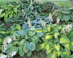 In late June/early July I planted a grouping of five on the other side of a Japanese maple - not directly underneath it - and under the shade canopy of a large, established sugar maple (about 10' from the trunk), which is the area I mentioned above. The soil is not great and on the drier side, but I do have sprinklers which hit the bed, so they did get supplemental water from the sprinklers, and I did hand-water occasionally just to be sure. I was going to go with three shrubs, but a grouping of five looked better.