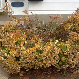 Fading after several nights in the low 20's. (I don't seem to have a photo of them in October when they are in full bloom.)