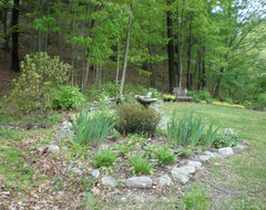 This garden has the street on the right--woods on the other side of the street. Straight back, you might be able to see a very steep hill. This is my southern (non) exposure. To the left is woods again. There are two large trees behind the photographer on an otherwise open lawn (my northern exposure). So, all in all, it's pretty dark. This is an older picture, so maybe my troubles this year have to do more with drought than light.