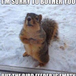 A few years ago my son bought a bird feeder that was supposed to be squirrel proof. We were visiting and sitting out on their deck after dinner. We watched a squirrel come to the bird feeder. It had a bar on the bottom that closed off the seed opening when weight was applied. Birds could land on it and feed but a squirrel was to heavy and would close off the opening. This crafty squirrel laid on top of the feeder and with his paws worked the bar up and down and fed heartily on the seeds he extracted from the feeder. My son and daughter-in-law came out on the deck after putting their toddlers to bed and asked what we were laughing at. We pointed to the feeder and said your squirrel proof feeder doesn't seem to be squirrel proof
