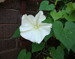 I grew Moonflower vine (Ipomoea Alba) for my Mom 3 years ago. She was from El Salvador, and Moonflowers there are called "Galán de noche" ( "Handsome by night".) The Moonflowers I grew here are not the same as in El Salvador, but they were close enough for Mom. I germinated the seeds in April, and planted them at the very beginning of May. By the time July rolled around, they had taken over! They are beautiful, and smell delicious, but are horrendous to cut down when the season is over. They dropped seeds everywhere, and 3 years later, I'm still getting Moonflower seedlings popping up! Here's a pic from 2012: