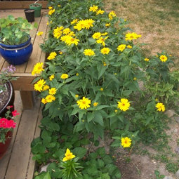 Thanks, wieslaw59. I'm going to throw the heads a little to the side (opposite side of the lily) and let them spread a little further that way. When the leaves started sprouting up it looked like lunaria/moneyplant to me. Then it didn't anymore. I was thinking they were sunflowers but they were too small. I love sun flowers so I love that these are "perennial sunflowers" (or close enough to it!)