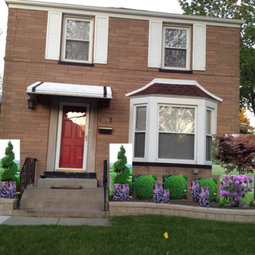 I think boxwood topiary would be an excellent idea for the semi-shade. I'm a big boxwood fan anyway, you can't really kill it. I have one poor bush that looks like a doughnut now because something chewed the center out, but it keeps going.