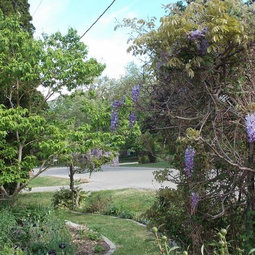 Thanks. The insects may indeed have been Carpenter Bees - they were flying between me and the sun so were just silhouettes to me without any details visible....! I guess we'd better keep our eyes open for suspicious holes in wood things! Post a picture of your wisteria arch....? Are you going for the look of the wisteria arches in some of the famous Japanese wisteria gardens? It took both my wisterias five years to bloom in the spring, although the Chinese one started putting out summer flowers at recent pruning sites by the second summer. My Japanese one has never produced any summer flowers. How old is yours and what kind is it?
