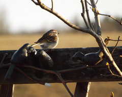 And look this little birdie has to hang out with the metal ones. When you give them a feeder they can socialize with real birds. LOL