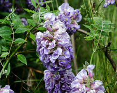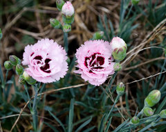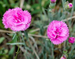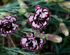 Just some assorted dianthus for now, and my wisteria, which has decided to bloom like mad.