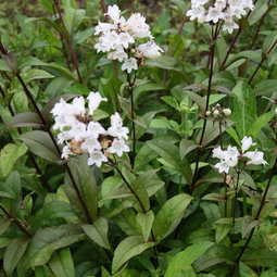 linnea56 Filipendula purpurea 'Elegans' is not a thug at all. The flowers are white, however the stamens are reddish giving the flowers a pink look. Maybe not nearly as pink as some images though lol! It is a terrific plant that I hope you really enjoy, I know I do.