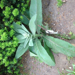 it looks like a verbascum to me. I googled (brilliant, I know!) large fuzzy gray leaved perennial and saw verbascum bombyciferum in the fourth or fifth row of pictures that sorta matched your picture. VERY interesting plant! If you google v...b... and look at the "images", it'll show it in different stages AND four in a row etc. YOU decide if you like it and want to keep it and its friends...verbascums can seed mightily!
