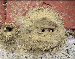 Not mason territory here, but green metallic bees like our sandy soil. As their landlord, my job consists only of reminding everyone those are not little ant mounds, and that they will not like the consequences if they harm them. Not much exciting to see activity-wise at their home. They are pretty visiting flowers though.