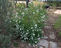 I had two plants that are competing for supremacy in this regard. My Snake broom weed or is it Broom snake weed ( Guiterezzia sarothrae) And Havana Snake Root( Eupatorium havanense, Shrubby boneset, white mist flower, Barba de viejo). The honey bees, 5 types of native bees , butterflies of every sort, honey bees, wasps, praying mantis and spiders were all on it at the same time with their haunches loaded in yellow pollen. After it bloomed past its time they all congregated across the yard on the white Havana Snake root and exchange their yellow jodhpurs for white ones. They made me laugh with their activity. The Havana snakeweed bloomed till late November /early December. Its popularity with the bees might be because there is not much else that is in such full bloom at that time. I am encouraging more of them around the land. They are both natives and can deal with the worst of the worst weather that is dealt out here.