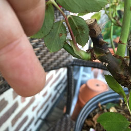 It looks like you might have another one there. In the pic above, the old-looking cane growing vertically to the left of your good green cane? Unless that's just fully woody and definitely very old, chop that one off, too :) It looks like maybe canker at its base, and you don't want it to creep to the good cane below it.