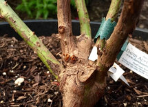 I am a lazy gardener. Since I plant the bud unions deeply, I leave my roses uncovered during winter and, therefore, usually loose every cane to winter's natural pruning.