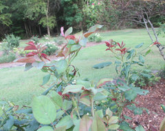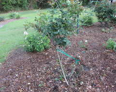 About training New Dawn: I have given up trying as the canes are stiff and the thing is a thorny monster. As soon as I ties one cane down, another one shoots right up. But I am a newbie (and a untidy gardener), and for the record, I did see Awakening beautifully trained. I doubt I would ever acquire that skill (or have the needed desire/courage). I don't get too close to ND these days, and have given up dead heading it.