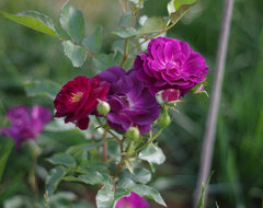 Alnwick Rose blooms freely, but the flowers shatter almost immediately in hot weather.