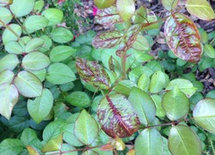 So these red bugs look like box elder bugs - the immature ones that are all red. They were lined up like armies in symmetrical rows on the evergreen shrub next to the roses. (I hate evergreen shrubs, I have pulled out just about every evergreen shrub except these). The weird thing is, there were no holes in the rose leaves before, they were just pale pale yellow. Now, there are these bugs, and some of the leaves have holes in them. These bugs are about the size of my pinky fingernail. I am fairly sure they are box elder bugs. I have cut back the roses as far as I could. I didn't put much potting soil on them, just a little bit around the base because the potting soil was dry and I thought maybe the nutrients in it would be helpful. I will put some mulch lightly over the top. I am just glad it doesn't appear to be the dreaded red rosette virus thing. I might have to plant something else in this spot though if these guys don't pull through.