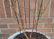 To make a stand-up shrub, I let the new basal canes bloom out and then cut them back to 3-4 feet. The cane then produces 2 or 3 laterals that are cut back to a self-supporting length and then branch again. Every time I prune a lateral, I leave several bud sites to encourage branching. Once you get a lot of branches, the plant will produce fewer long basal canes.