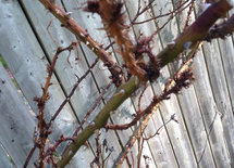 Leah I normally prune my Julia Childs right down to about two feet. Around August I start doing some severe deadheading instead of all over pruning. As flowers die instead of a normal short deadheading I take that particular cane down. i'm guessing no more than a foot. On some of my other roses that have canes like octopus arms I take them back by as much as three feet. This is just the way I've learned to keep my roses manageable without losing out on any blooms as the rest of the plant keeps giving me flowers.