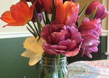 But her blooms are beautiful--lovely pink/peach/salmon shades with yellow at the base! And her re-bloom rate is good. Her two best features.