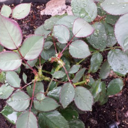 to dublinbay: I'm convinced my problem was frost. My roses are now looking pretty good for this time of the year. The rose shown is not Double Delight. The name I have down for it is Spicy Fragrant, but I'm a little worried that this name is incorrect. I keep a table with all of my roses listed, with name and year acquired, so I don't have any reason to doubt this name, but I can't find anything about it on the internet!! Thanks for your help, David