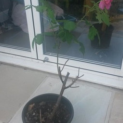 The poor tiny band rose that got shaken out of its pot in the box managed to pull through as dry as it had been. There was no plastic bag or anything to protect it and it looked like all the roots were dried to death. The stem was still green so I did what Kim said and soaked it and then planted it in the best soil I had. It was slow to go and lost the smallest cane, but it lived and now is growing right along.