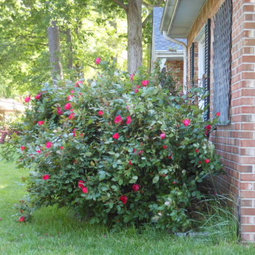 I ended up deciding on an arrangement of curved trellis panels to encompass all the plants, and started trimming (again) before the weather went haywire here. Before our first frost, the rose to the far right had already put out enough new growth I was able to start training it! Since the first attempt was successful, I'll be able to gradually work my way across the arc next year and eventually have the roses eventually back under control (we hope). Will follow with pictures when the weather warms up a bit.