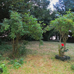 I still think it would be a good idea to clean the crepe myrtle up a bit before putting in a rose.It would be so messy if the tree dies and gets knocked down once the rose is nice and big and mature. I think I'd prune and fertilize it ,not so much with the idea of nursing it back into shape for it's own sake, but with the concept that I'd want to create a valid support for my rose. Just my 2 cents....bart
