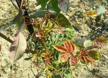 My neighbor was spraying for poison ivy in his yard and hedge but he never bothered to check on wind conditions before hand, he just sprayed when and where ever he saw it. He never told me until after I found the damage on my roses. Like you I freaked out and thought it was RRD. Until I spotted him out there spraying on a blustery day! After talking to him I realized what had happened. His hedge is a good 30 or 40 feet from my rose bed but the prevailing winds come from that direction and it was blown all the way into my bed. I lost a few other perennials because of it too. Now he knows to let me know when he's going to spray so I can protect my roses.